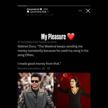 Nükhet Duru, yaptığı açıklamada The Weeknd’in “Often” şarkısında kendi eserinden bir bölüm kullandığını belirterek bu nedenle düzenli olarak telif geliri aldığını söyledi.